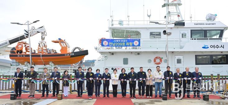 브릿지저널 김경미 기자 | 여수시는 지난 2월 27일 여수 엑스포항 일원에서 수산자원 보호와 어업질서확립을 위해 건조한 신규 다목적 관공선(어업지도선) 전남 209호의 취항식을 개최했다고 밝혔다.