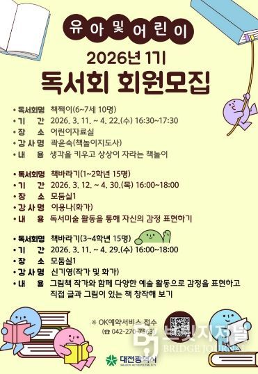 브릿지저널 정보영 기자 | 동대전도서관은 2026년 유아 및 어린이독서회(1기) 회원을 모집한다.