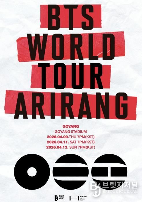 브릿지저널 김경미 기자 | 전 세계의 이목이 집중된 방탄소년단의 월드투어 ‘BTS WORLD TOUR ‘ARIRANG’’가 오는 4월 경기도 고양시에서 그 화려한 서막을 알린다.