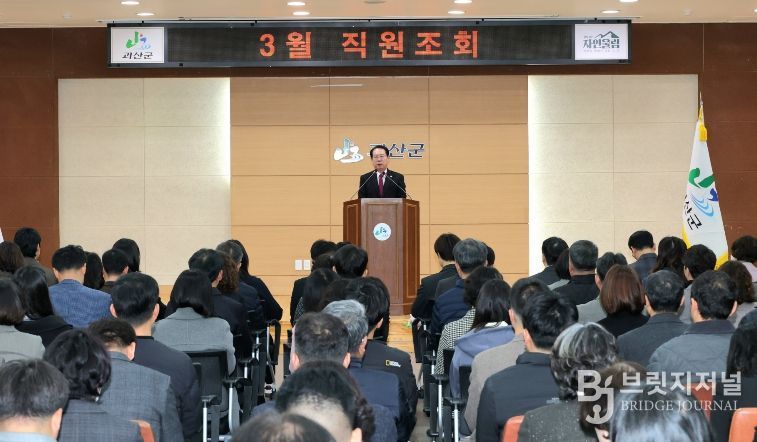 브릿지저널 김경미 기자 | 충북 괴산군은 3일 군청 대회의실에서 3월 직원조회를 열고 민생안정지원금 신청률 98.4% 달성에 따른 직원들의 노고를 격려하고 봄철 주요 현안업무에 전 행정력을 집중해 줄 것을 당부했다.