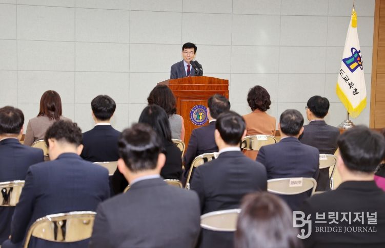 브릿지저널 김경미 기자 | 윤건영 충청북도교육감은 3일, 도교육청 화합관에서 3월 월례조회를 개최했다.