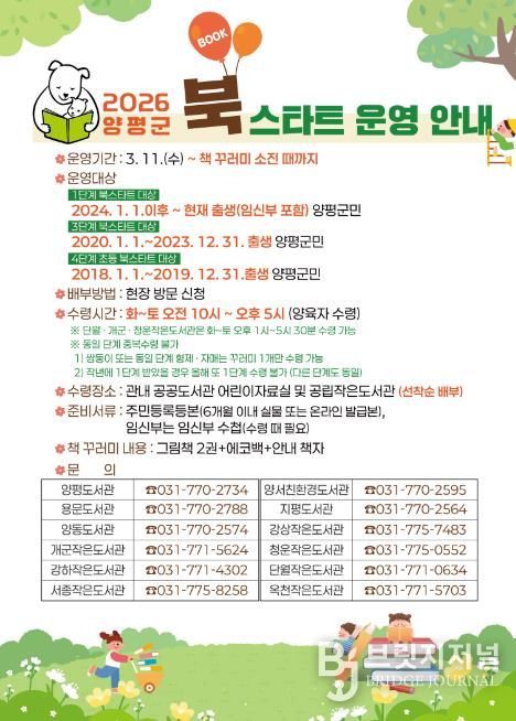 브릿지저널 김경미 기자 | 양평군은 오는 11일부터 ‘2026년 북스타트 사업’을 본격 운영한다고 밝혔다.