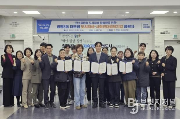 시는 3일 시청 중회의실에서 광명3동 더드림 도시재생사업의 일환으로 ‘탄소로운 팝업’ 활성화를 위한 협력식을 열고, 주민 참여형 탄소중립 실천 모델을 현장에 적용하기 위한 협력체계를 구축했다.