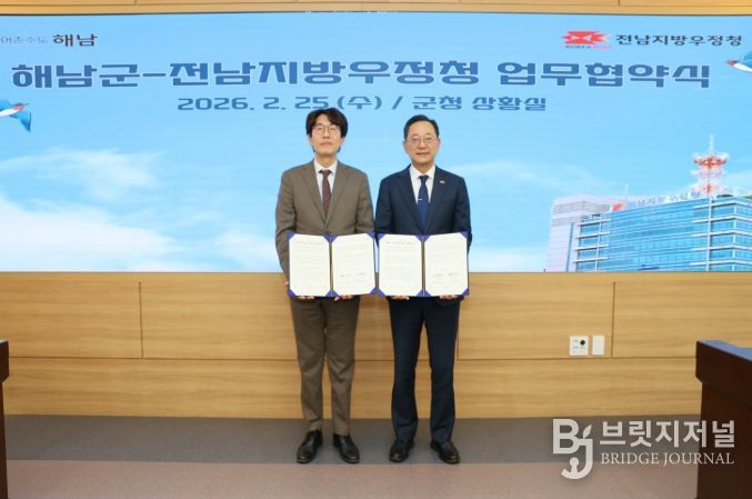 브릿지저널 김경미 기자 | 해남군은 25일 전남지방우정청과 해남 농수축산물의 온라인 판로 확대와 유통 활성화를 위한 업무협약을 체결했다.