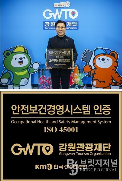 브릿지저널 윤나영 기자 | 재단법인 강원관광재단이 국제표준화기구(ISO)가 제정한 안전보건경영시스템(ISO 45001) 인증을 한국경영인증원(KMR)으로부터 지난 2월 20일 , 획득했다고 밝혔다.