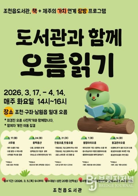 브릿지저널 정보영 기자 | 제주시 조천읍도서관은 제주의 가치가 담긴 독서문화 탐방 프로그램 ‘도서관과 함께 오름 읽기’를 운영한다.