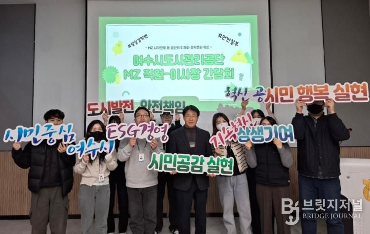 브릿지저널 김경미 기자 | 여수시도시관리공단은 지난 2월 26일 MZ세대 직원과 이사장이 함께하는 소통 간담회 개최를 통해 세대 간 이해 증진과 조직문화 혁신을 위한 뜻깊은 시간을 가졌다고 밝혔다.