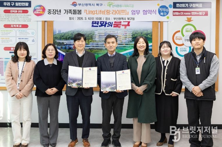브릿지저널 윤나영 기자 | 부산 북구는 4일 만덕종합사회복지관과 가족돌봄 중장년 가구를 지원하는 ‘Ling:Life(링:라이프)’ 사업 추진을 위한 업무협약을 체결했다고 밝혔다.