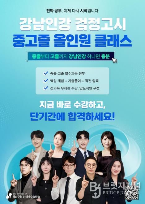 브릿지저널 김경미 기자 | 꿈이 모이는 도시, 미래를 그리는 강남구가 검정고시 수험생을 위한 온라인 교육 콘텐츠 ‘강남인강 검정고시 올인원 클래스’를 개강한다. 고졸 과정은 3월 9일부터 강남인강 홈페이지에서 수강할 수 있다.