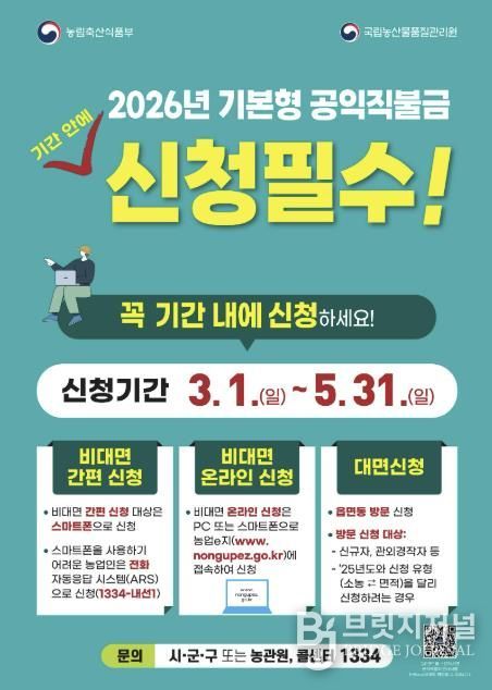 브릿지저널 김경미 기자 | 시흥시는 5월 31일까지 ‘2026년 기본형 공익직불금’ 신청을 받는다고 5일 밝혔다.