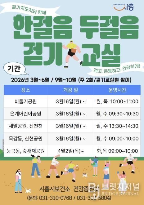 브릿지저널 김경미 기자 | 시흥시는 시민들의 일상 속 걷기 실천을 장려하고 건강생활 습관 형성을 돕기 위해 ‘한 걸음 두 걸음 걷기교실’을 운영한다.