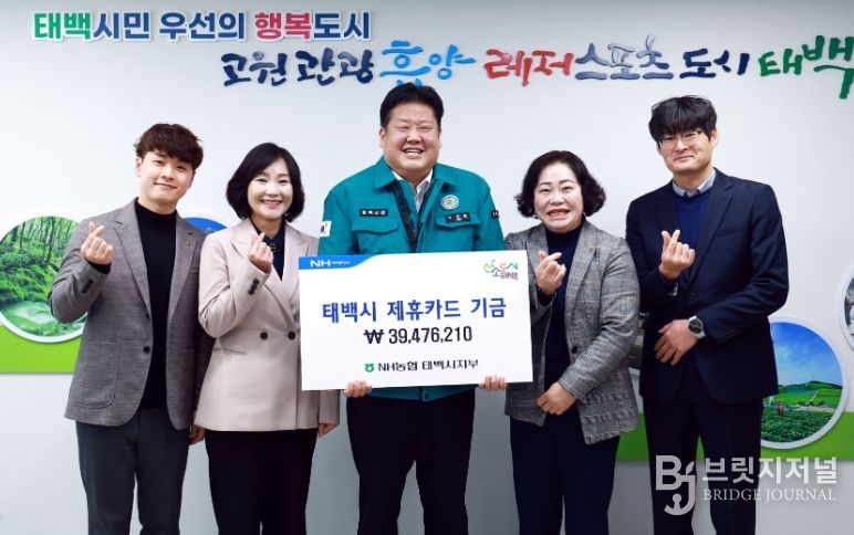 브릿지저널 윤나영 기자 | 태백시는 지난 3일 NH농협은행 태백시지부(지부장 이미선)와 2025년분 제휴카드 적립기금 39,476,210원에 대한 전달식을 가졌다고 밝혔다.
