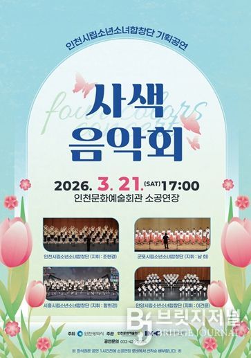 브릿지저널 김경미 기자 | 인천시립소년소녀합창단(예술감독 조현경)이 오는 3월 21일 인천문화예술회관 소공연장에서 4개 도시의 목소리가 한데 어우러지는 특별한 교류연주 '사색음악회'를 개최한다.
