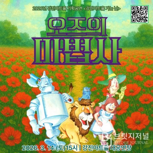 브릿지저널 김경미 기자 | 강진군 강진아트홀이 오는 14일 오후 3시, 3대가 함께 즐기는 공연 ‘오즈의마법사’를 상연한다.