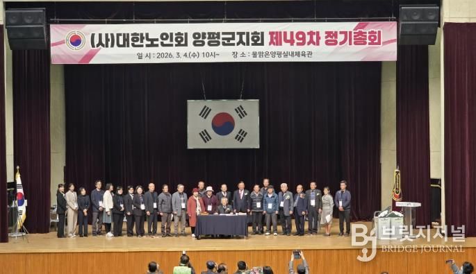 브릿지저널 김경미 기자 | 대한노인회 양평군지회는 지난 4일 오전 10시부터 오후 1시까지 물맑은양평체육관에서 지회장 및 대의원 350여 명이 참석한 가운데 ‘2026년 제49차 정기총회 및 제17대 양평군지회장 선거’를 개최했다.