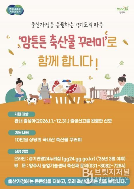 브릿지저널 김경미 기자 | 양주시는 출산 가정의 건강 증진과 지역 축산물 소비 촉진을 위해 ‘2026년 맘튼튼 축산물 꾸러미 지원사업'을 추진한다.