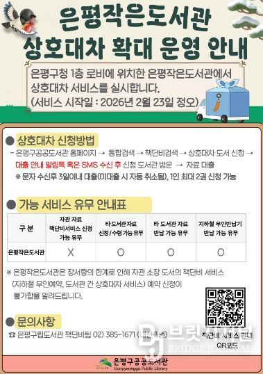 브릿지저널 김경미 기자 | 서울 은평구는 은평구 공공도서관 상호대차 서비스 ‘책단비’를 확대 운영한다고 밝혔다.