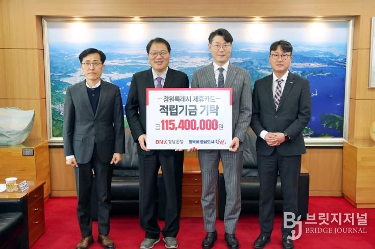 브릿지저널 김경미 기자 | 창원특례시는 3월 5일 시청 접견실에서 BNK경남은행 관계자들이 참석한 가운데 제휴카드 적립기금 전달식을 개최했다.