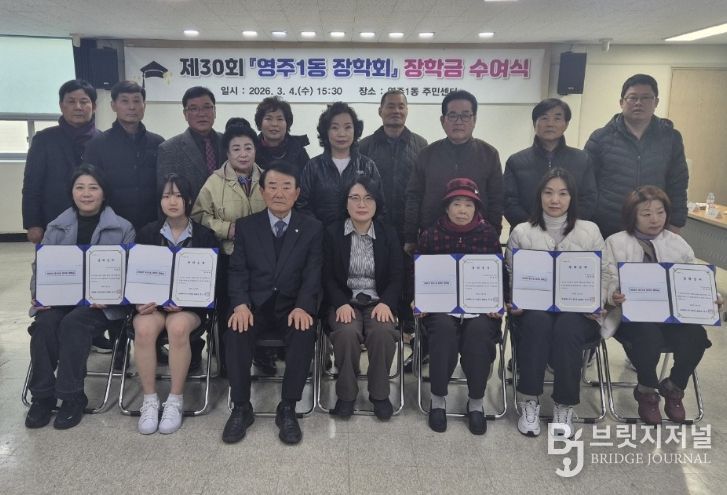 브릿지저널 윤나영 기자 | 부산 중구 영주1동 장학회(회장 문성기)는 지난 4일 영주1동 주민센터에서 2026년 영주1동 장학생으로 선정된 고등학생 3명과 대학생 2명 등 총 5명에게 장학금 350만 원을 전달했다.