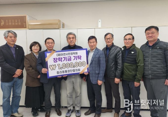 브릿지저널 김경미 기자 | 중리동 통장단협의회는 지난 3월 4일 지역 인재 육성을 위해 이천시민장학재단에 장학금 100만 원을 기탁했다.