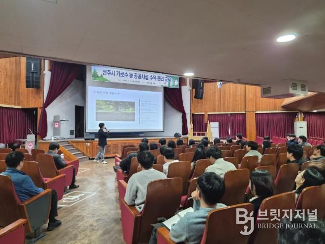 브릿지저널 윤나영 기자 | 전주시는 5일 시청 강당에서 소속 부서 및 산하·출연기관 관계자 150여 명을 대상으로 ‘가로수 등 공공시설 수목 관리 교육’을 실시했다.