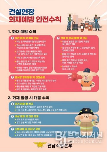 브릿지저널 김경미 기자 | 나주소방서는 봄철 건조한 날씨로 인해 건설현장 화재 위험이 높아짐에 따라 관내 공사장 관계자를 대상으로 안전수칙 준수를 위한 현장지도와 홍보활동을 추진한다고 밝혔다.