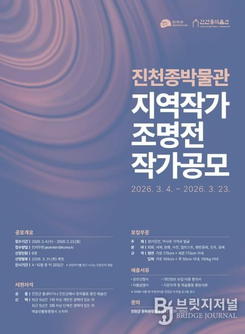 이번 사업은 진천을 기반으로 활동하는 역량 있는 예술인을 발굴해 매월 새로운 작가를 소개하는 소규모 전시 프로그램으로, 진천종박물관 2층 회랑 전시 공간에서 연중 운영될 예정이다.