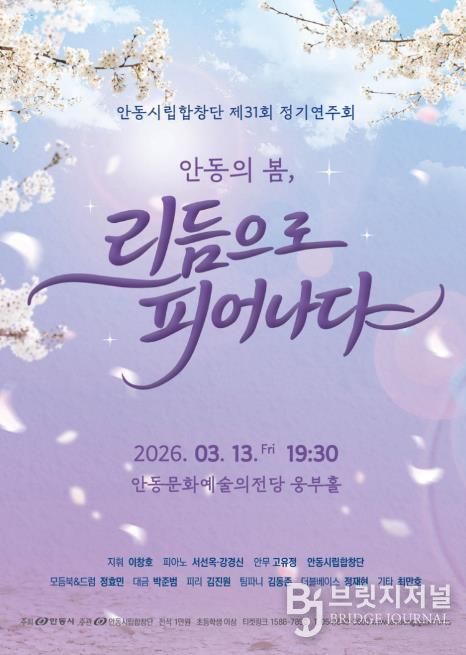 브릿지저널 정보영 기자 | 안동시를 대표하는 전문예술단체인 안동시립합창단이 오는 3월 13일 오후 7시 30분 안동문화예술의전당 웅부홀에서 제31회 정기연주회 ‘안동의 봄, 리듬으로 피어나다’를 개최한다.