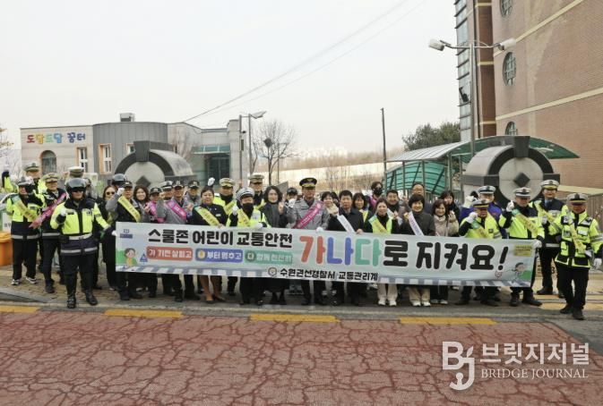 브릿지저널 김경미 기자 | 수원시 권선구는 새 학기를 맞은 어린이들의 안전한 등·하굣길 조성을 위해 3월 5일 관내 금곡초등학교 일원에서 학교 주변 불법주정차 금지 캠페인을 실시했다.