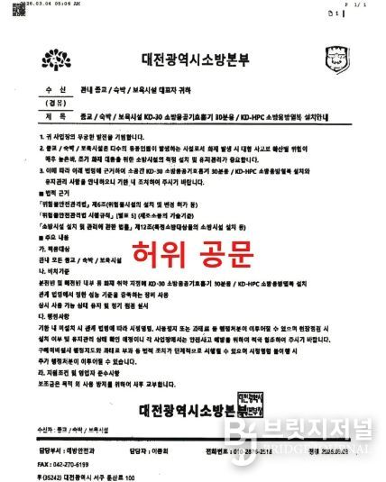 브릿지저널 정보영 기자 | 대전소방본부는 최근 전국에서 소방공무원을 사칭해 물품 구매를 요구하는 사기 사례가 잇따르는 가운데, 대전 지역에서도 유사 사례가 발생함에 따라 시민들의 각별한 주의를 당부했다.