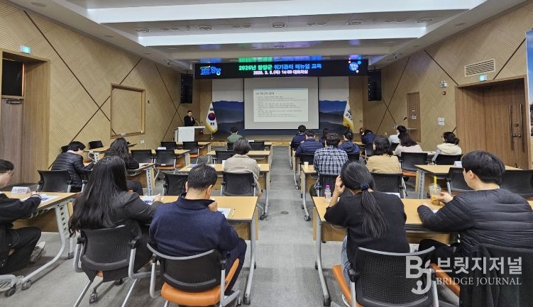 브릿지저널 김경미 기자 | 함양군은 3월 5일 군청 대회의실에서 42개 위기관리 매뉴얼 담당자 54명을 대상으로 재난 대응 역량 강화를 위한 ‘재난대응 행동 매뉴얼 순회교육’을 실시했다.