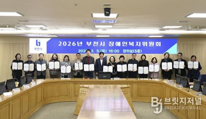 브릿지저널 김경미 기자 | 부천시는 지난 5일 시청 창의실에서 ‘2026년 제1차 부천시 장애인복지위원회’를 열고, 장애인과 가족이 체감할 수 있는 실질적 복지정책 추진을 위한 소통의 시간을 가졌다.