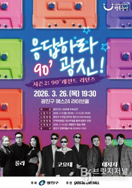 브릿지저널 김경미 기자 | 광진구가 오는 3월 26일, 예스24 라이브홀(광장동)에서 “응답하라 광진 시즌2: 90’ 레전드 리턴즈” 콘서트를 개최한다.
