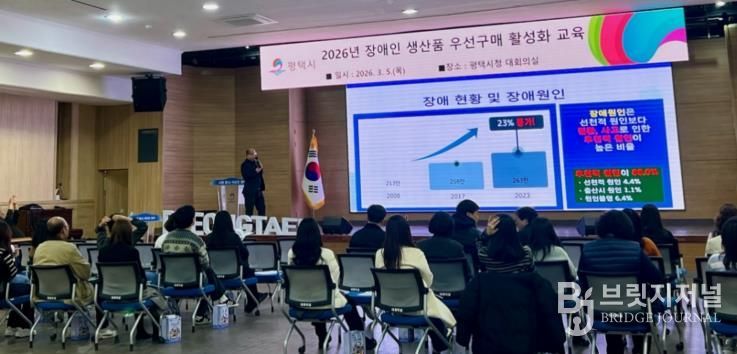 브릿지저널 김경미 기자 | 평택시는 지난 5일 시청 본관 2층 대회의실에서 평택시 공무원을 대상으로 '2026년 장애인생산품 우선구매 활성화 교육’을 실시했다.