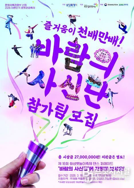 브릿지저널 김경미 기자 | (재)화성시문화관광재단은 제16회 화성 뱃놀이 축제의 주인공이 될 ‘바람의 사신단 댄스 퍼레이드‘경연 참가팀을 모집한다.