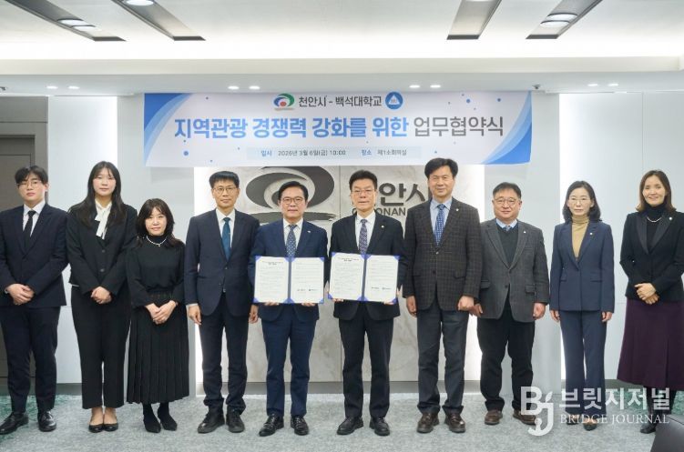 브릿지저널 정보영 기자 | 천안시가 백석대학교와 손을 잡고 지역관광 경쟁력 강화와 전문 인재 양성을 위한 체계적인 협력 체계 구축에 나선다.