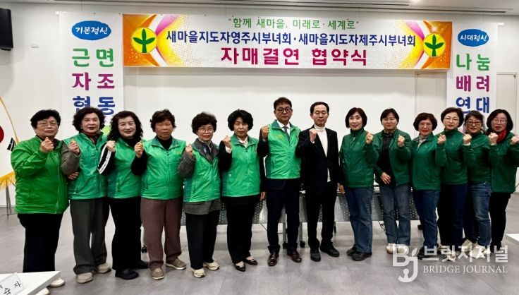 브릿지저널 정보영 기자 | 새마을지도자영주시부녀회(회장 정경자)는 지난 6일, 새마을선비회관 2층 강당에서 새마을지도자제주시부녀회(회장 강길선)와 문화·관광 분야 활성화와 지역 간 농특산물 직거래 확대 등을 위한 자매결연 협약(MOU)을 체결했다.