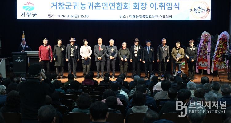 브릿지저널 김경미 기자 | 거창군귀농귀촌인연합회는 지난 6일, 거창군농업기술센터 미래농업복합교육관에서 내빈과 연합회 회원 등 150여 명이 참석한 가운데 제7대·8대 회장 이·취임식을 개최했다.