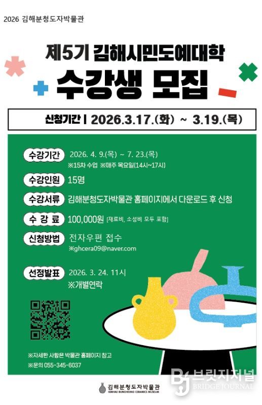 브릿지저널 김경미 기자 | 김해분청도자박물관은 오는 17일부터 19일까지 제5기 김해시민도예대학 수강생을 모집한다.