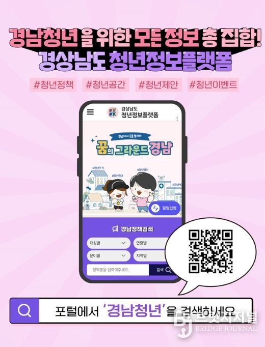 브릿지저널 김경미 기자 | 경상남도는 도내 청년 창업가들의 자유로운 본인 홍보를 위해 경남청년정보플랫폼에 ‘청년 PR(홍보)’ 메뉴를 신설한다고 밝혔다.
