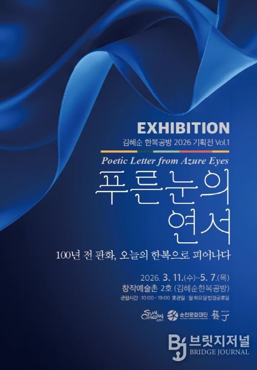 브릿지저널 김경미 기자 | 순천문화재단이 운영하는 창작예술촌 2호 김혜순한복공방에서 3월 11일부터 5월 7일까지 기획전 '푸른 눈의 연서(戀書)'를 개최한다.