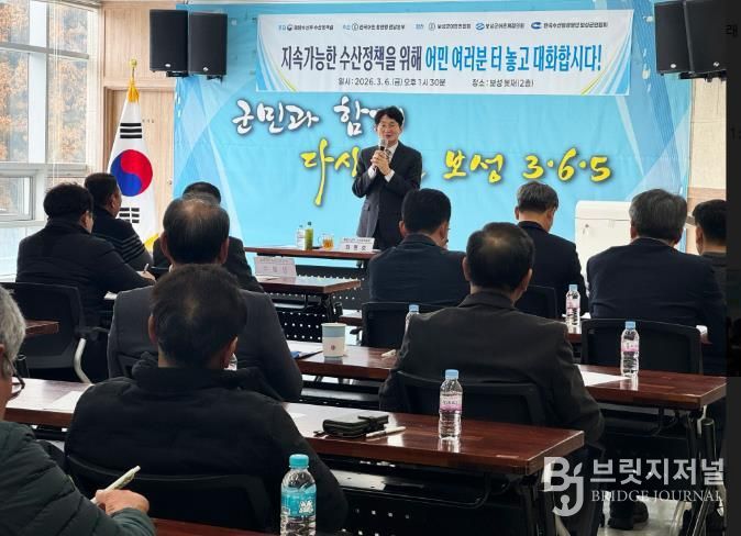 브릿지저널 김경미 기자 | 보성군은 지난 6일 봇재홀에서 해양수산부와 전국어민회총연맹 주관으로 ‘2026 전국 순회 수산정책 소통간담회’를 개최했다고 밝혔다.