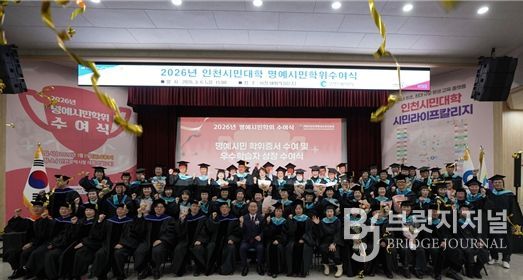브릿지저널 김경미 기자 | 인천인재평생교육진흥원은 ‘2026년 인천시민대학 시민라이프칼리지 명예시민학위수여식’을 3월 6일 오후 3시 인천시청 대회의실에서 개최했다.