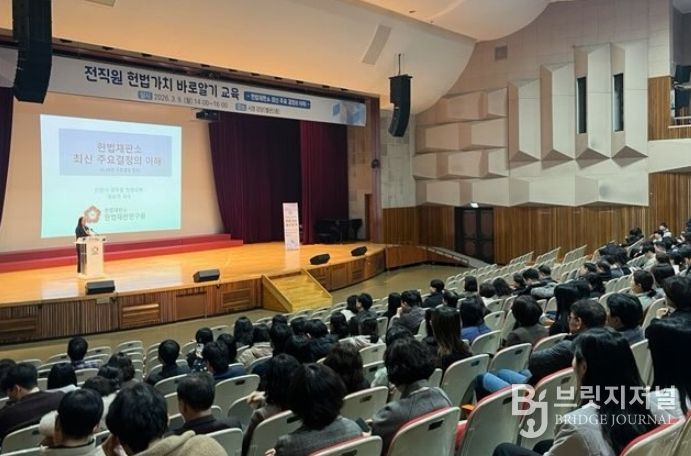브릿지저널 김경미 기자 | 안양시는 9일 오후 2시 소속 공무원들을 대상으로 예승연 헌법재판소 헌법재판연구원 교수를 초빙해 ‘헌법가치 바로 알기’ 교육을 실시했다.