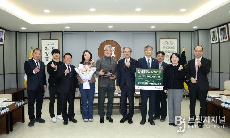 발전기금 전달식은 이날 대학본부 5층 접견실에서 이근배 총장을 비롯한 대학 주요 보직자들과 김형석 원장 및 가족, 김용환 꿀벌동물병원 원장(전남대 수의대 동창회장), 김영백 첨단우리병원 원무부장 등 관계자들이 참석한 가운데 진행됐다.