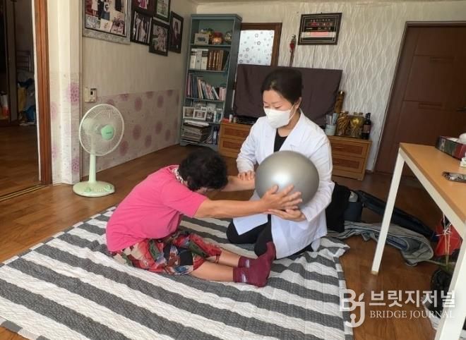 대상자의 신체 상태와 주거환경을 면밀히 고려해 낙상 예방을 위한 자가 운동 교육과 도구를 활용한 운동 방법, 자세 교정을 지도하고 있으며, 근력 강화와 관절 기능 유지에 도움이 되는 다양한 재활운동을 진행하고 있다.