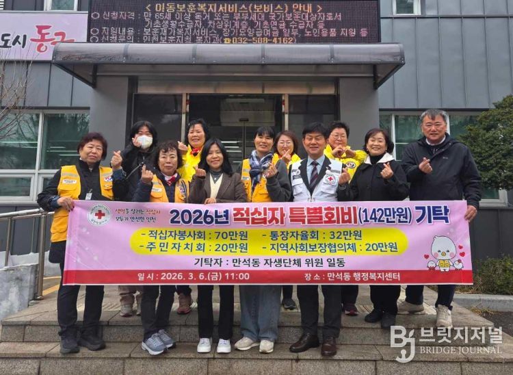 브릿지저널 김경미 기자 | 인천 동구 만석동 소재 자생단체들은 지난 6일 동 행정복지센터에서 적십자 특별회비 기탁식을 개최했다고 밝혔다.