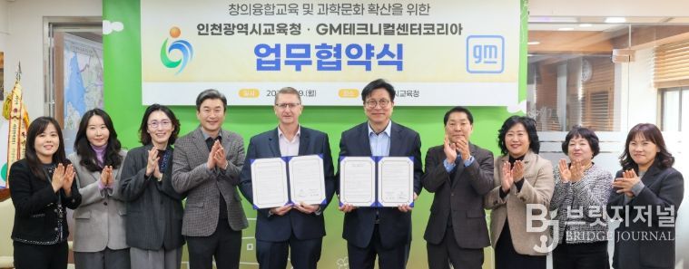 브릿지저널 김경미 기자 | 인천광역시교육청은 지난 9일 GM테크니컬센터코리아(사장 브라이언 맥머레이)와 ‘창의융합교육 및 과학문화 확산을 위한 업무협약’을 체결했다.