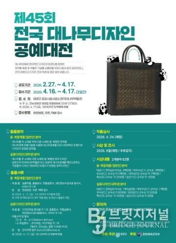 브릿지저널 김경미 기자 | 대나무의 고장 담양군이 유구한 역사를 자랑하는 국내 유일의 대나무공예 공모전인 ‘제45회 전국대나무디자인공예대전’을 개최한다.