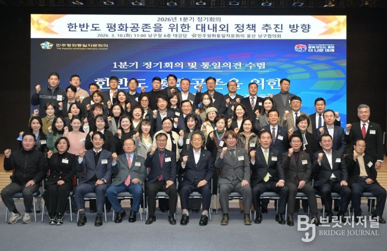 브릿지저널 윤나영 기자 | 민주평화통일자문회의 울산남구협의회는 10일 남구청 6층 대강당에서‘한반도 평화공존을 위한 대내외 정책 추진 방향’을 주제로‘2026년 제1차 정기회의’를 개최했다.